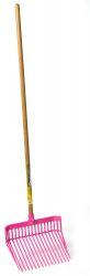 This is the original Little Giant DuraFork bedding fork that is a fixture in stables and barns everywhere. Manufactured from extra-strong 100 percent polycarbonate to provide super strength and flexibility. Designed for long-lasting use around the farm, ranch, and home. Specially designed tines are uniquely angled to provide easy manure pickup with less spilling. Nylon locknut secures the 52 inch long by 1.125 inch diameter hardwood handle. Fork head is 13.125 inch long by 15.125 inch wide. Berry blue fork head.