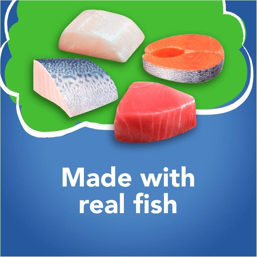 Fill your galley with the seafaring flavors found in this Purina Friskies Seafood wet cat food variety pack. Each package contains four Purina Friskies Pate recipes, including Ocean Whitefish & Tuna Dinner, Mariner's Catch, Salmon Dinner and Sea Captain's Choice. Each variety features an assortment of fish flavors sure to satisfy her hunger, and the pate texture invites her to nibble her way to the bottom of her dish at feeding time. With essential vitamins and minerals in every serving, this wet cat food collection lets you feel good about the foods you serve to your cat companion. The 32-count package offers a convenient way to keep your pantry stocked for your feline family, and the pull-tab cans allow for easy serving. Offer a different recipe as your cat's main entree at feeding time, or rotate between wet and dry foods with our mouthwatering Purina Friskies 7 dry cat food to give her even more tastes and textures to love. We believe that life is better with pets, and that's why we work to make quality the number one ingredient in everything we produce. Each recipe in this collection is formulated to meet or exceed industry standards for cat food, so you can rest easy knowing she's getting meals that are as nutritious as they are delicious. Our team of experts performs rigorous quality and safety checks at every step in the production process to ensure your cat's foods are safe. At Purina, we value sustainability, and that's one reason that every can in this wet cat food collection is conveniently recyclable. Your purchases can help you to make a positive impact on the environment while giving your cat the delicious, nourishing foods she deserves. Make this Purina Friskies Seafood wet cat food variety pack part of your cat's regular diet, and let her know just how much her health and happiness mean to you.