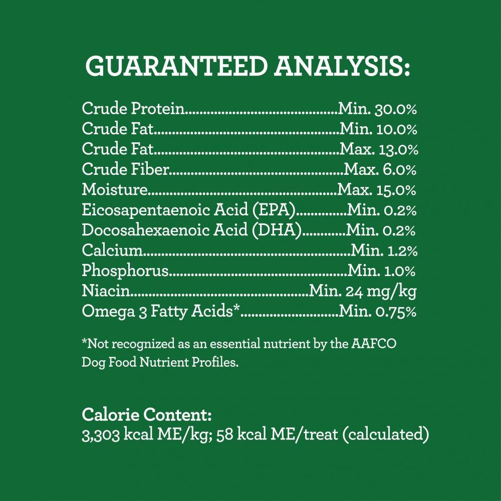 Dental dog treats made with natural ingredients, plus vitamins, minerals, nutrients, and DHA to support brain development
