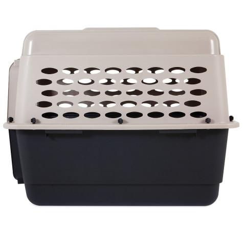 Perfect for housebreaking, the Petmate® Vari Kennel® is ideal for training and traveling. Features include tough durable construction with an easy-open squeeze latch, vents on side walls, an interior moat to keep pets dry and tie-down strap holes on the perimeter for zip-tie installation and extra security during airline travel. Vari Kennels in sizes 19" and 24" offer a handle, a built-in compartment cover for added storage of treats or other pet needs, and the seatbelt loop is a notch in the top of the kennel so you can secure it in a car. The 28" Vari Kennel comes with a handle but does not come with the built-in compartment. Vari Kennels in sizes 32", 36", and 40" do not have a handle or built-in compartment. The Petmate Vari Kennel is easy-to-assembly with no tools required. Includes wing nuts and bolts. For airline travel, the use of wing nuts and bolts is required. Meets most air travel requirements, please contact your airline before traveling for verification of their specific requirements. Made in the USA.