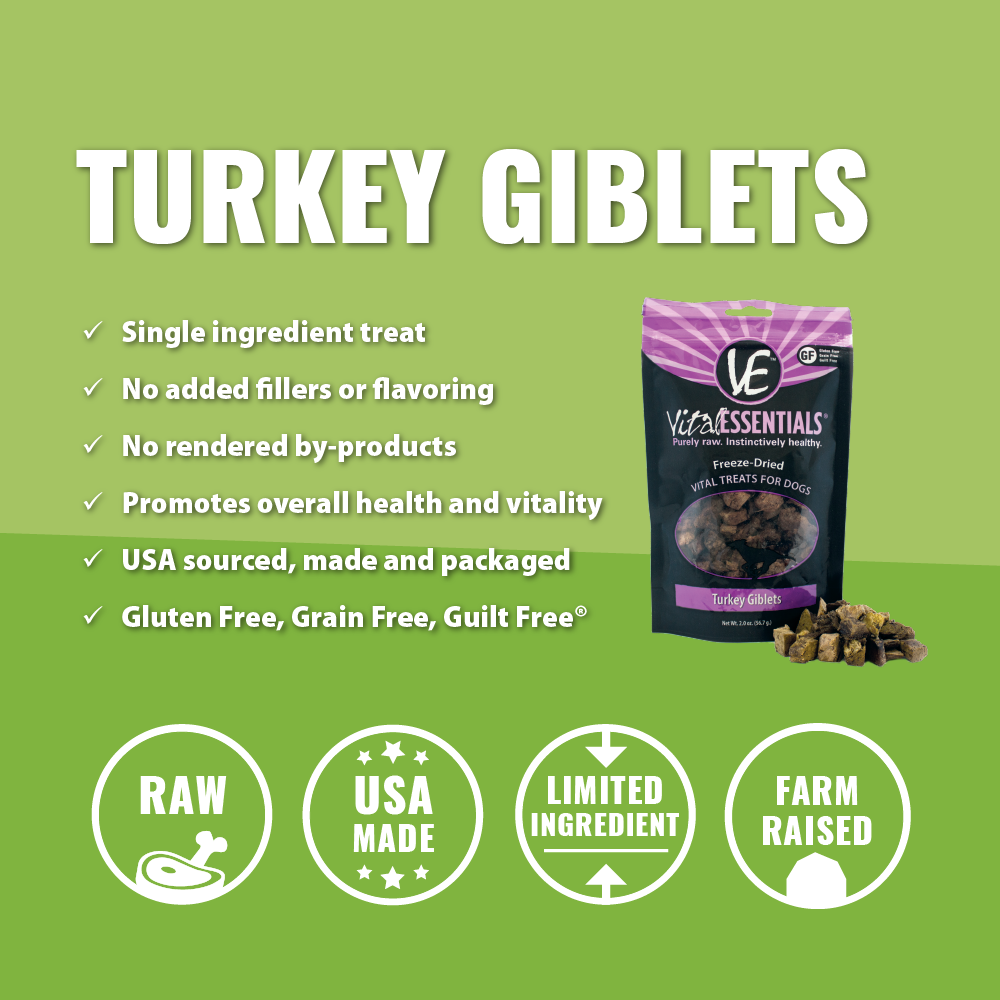 Vital Essentials Freeze Dried Turkey Giblets Vital Treats for Dogs